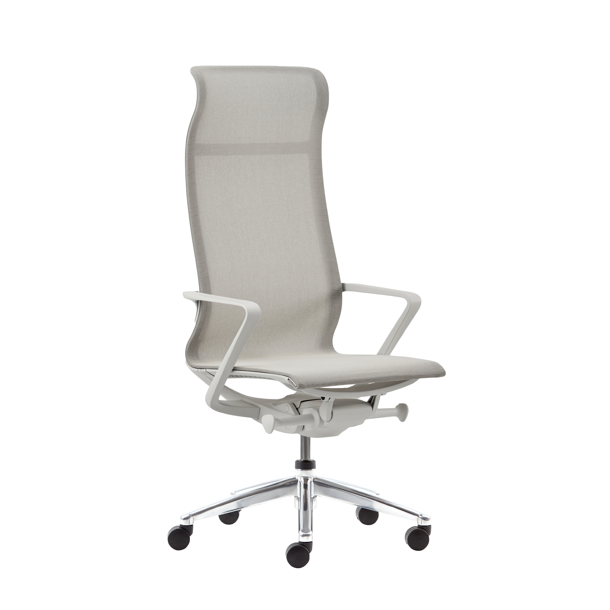 Cuenta con: respaldo alto y asiento en mesh, apoyabrazos , ajuste de altura e inclinación, forward tilt, con rodos de 60 mm.